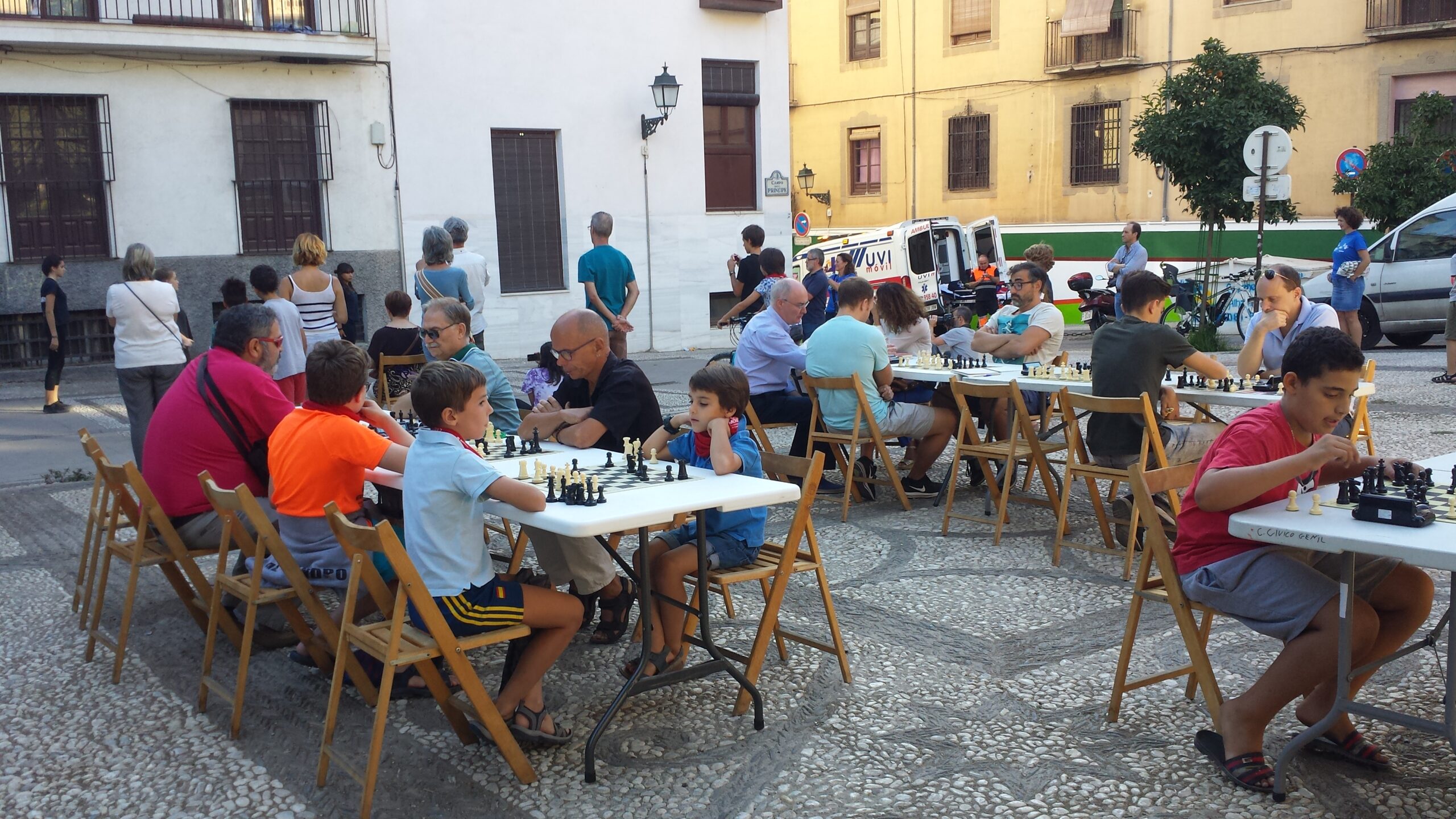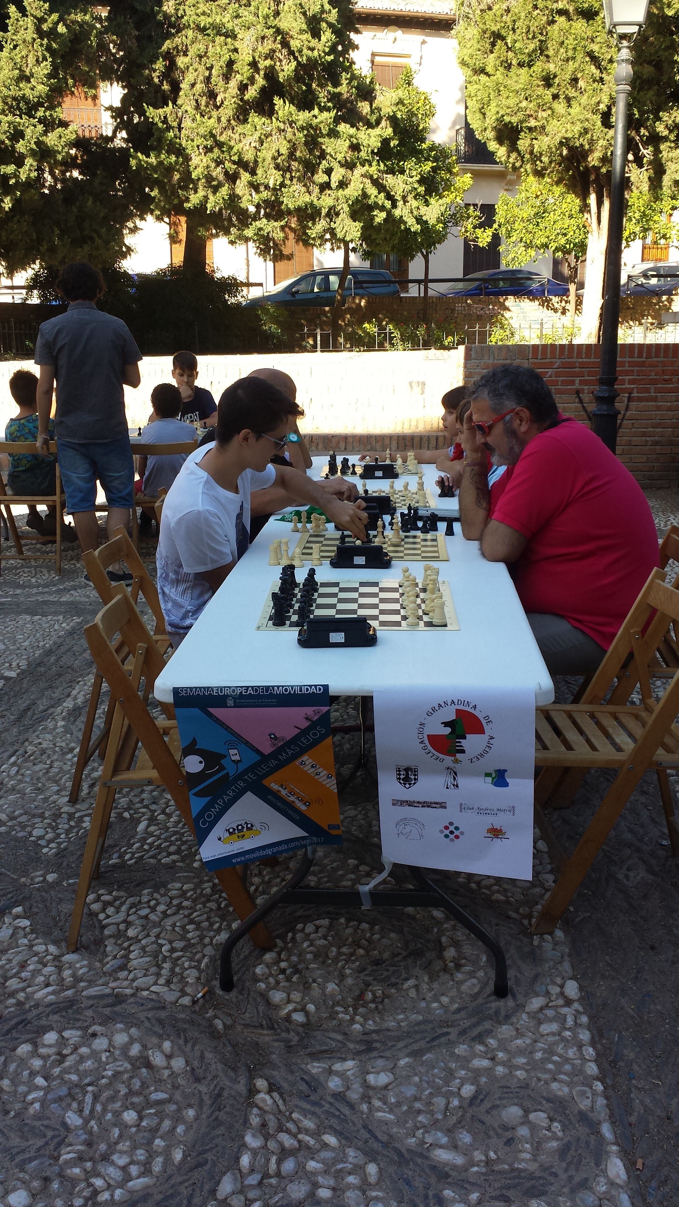 Dentro del programa Semana Europea de la Movilidad, la Delegación Granadina de Ajedrez, ha participado ocupando un espacio tan bello como emblemático de la ciudad de Granada como es el Campo del Príncipe, a los pies del Señor de los Favores, se montaban un puñado de mesas y sillas e invitaba a todos los viandantes a participar de nuestro deporte.