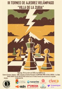 Bases Relámpago La Zubia 2025 Navegación de entradas ÁNGEL SERRANO CAMPEÓN AJEDREZ RELÁMPAGO Y SUBCAMPEÓN EN RÁPIDO ANGEL SERRANO ALMENDROS CAMPEON PROVINCIAL ABSOLUTO