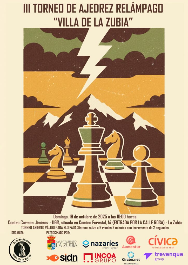 Bases Relámpago La Zubia 2025 Navegación de entradas ÁNGEL SERRANO CAMPEÓN AJEDREZ RELÁMPAGO Y SUBCAMPEÓN EN RÁPIDO ÁNGEL SERRANO ALMENDROS CAMPEÓN PROVINCIAL ABSOLUTO